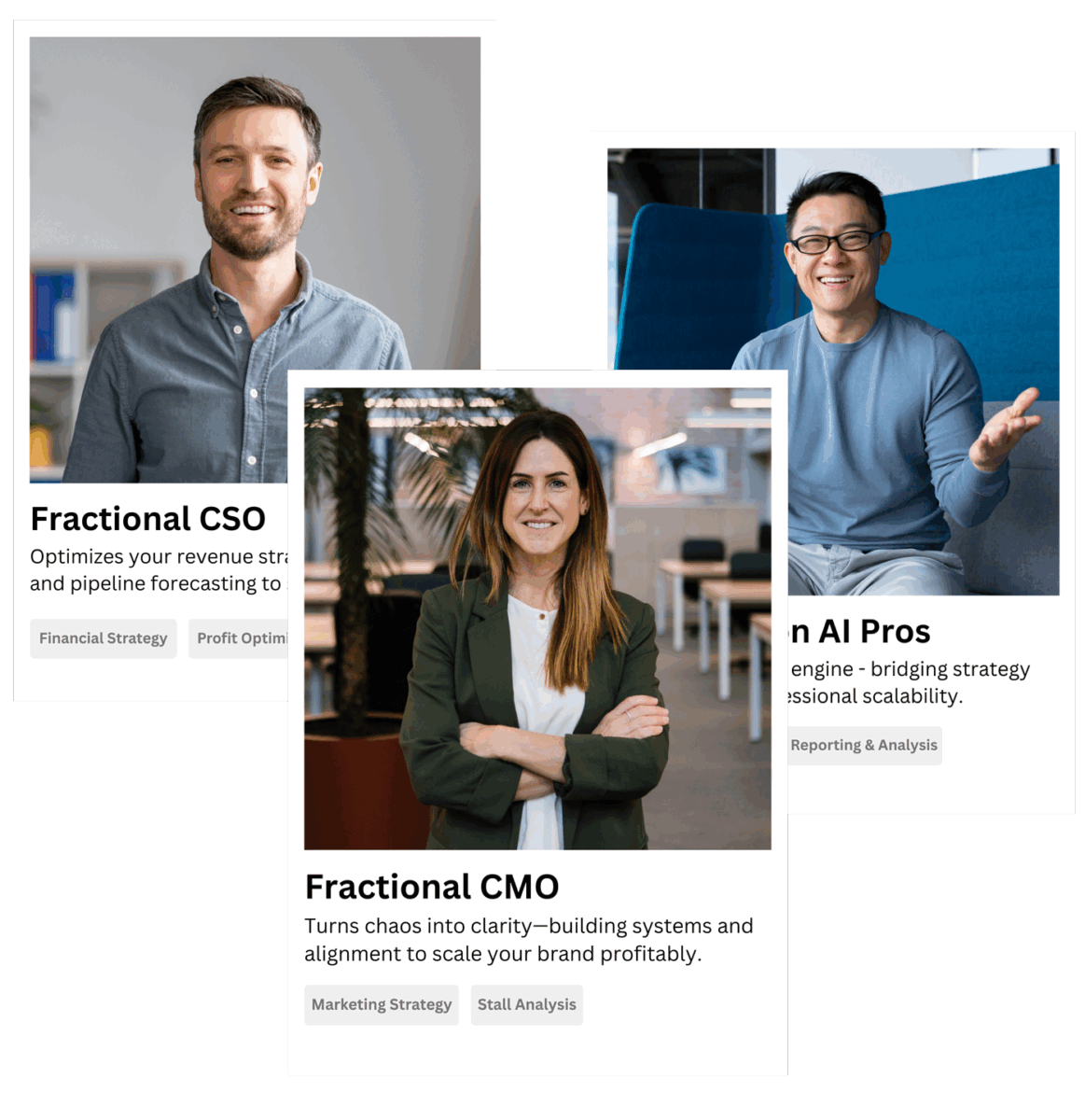 Vetted fractional pros aligned with your industry — helping you execute faster and operate smarter.